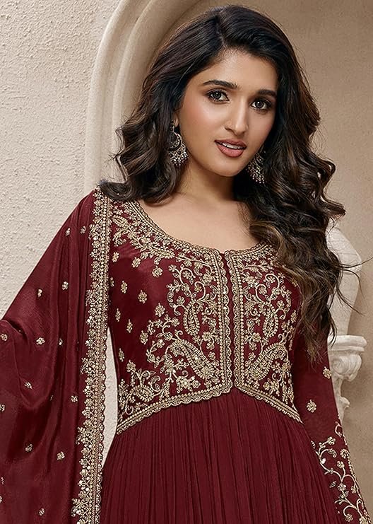 TRENDMALLS Women’s Silk Blend Embroidery Alia Cut Kurta Pant Set with Dupatta